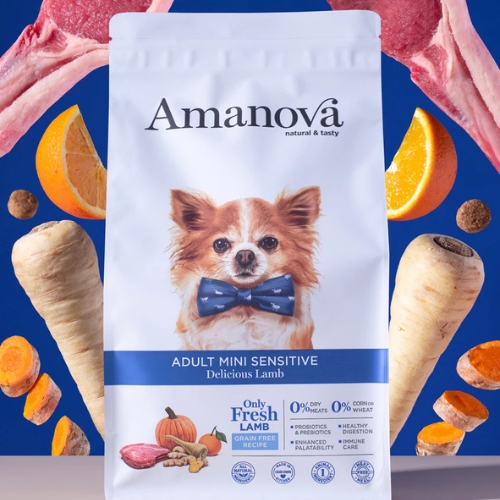 AM Adult Mini Sensitive Delicious Lamb is speciaal ontwikkeld voor volwassen honden van kleine rassen die extra ondersteuning nodig hebben bij hun spijsvertering of huid en vacht. Deze graanvrije voeding is bereid met vers lamsvlees als enige dierlijke eiwitbron en is daardoor zeer geschikt voor honden met voedselgevoeligheden of intoleranties.