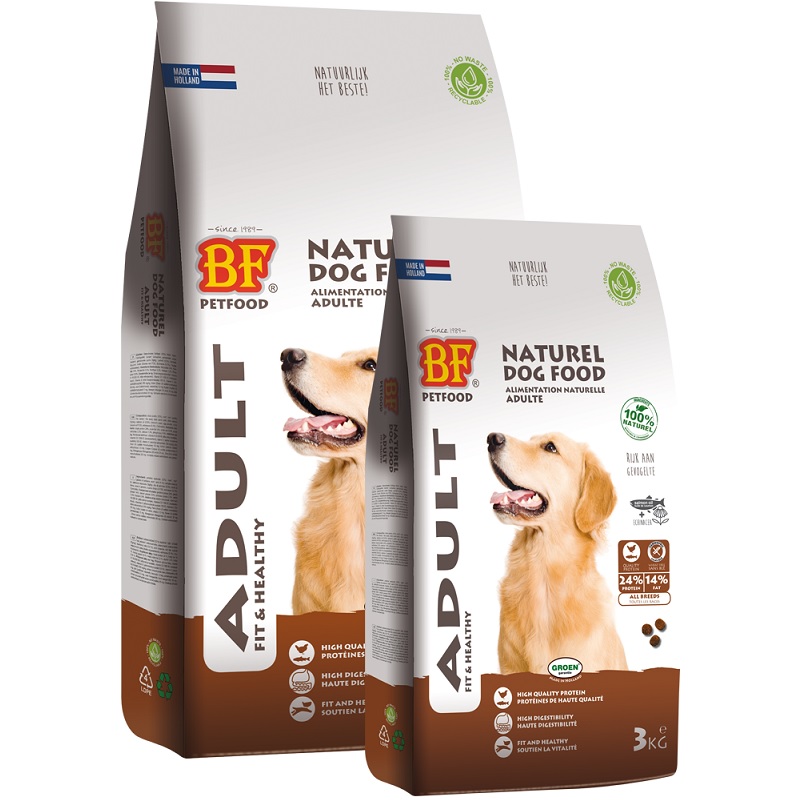 Biofood adult is een smaakvolle hondenbrok die geschikt is voor alle volwassen hondenrassen met een normale energiebehoefte. Deze brok is rijk aan gevogelte en zalm en is tarwevrij. De hoogwaardige, natuurlijke ingrediënten zorgen voor een optimale conditie van je hond.