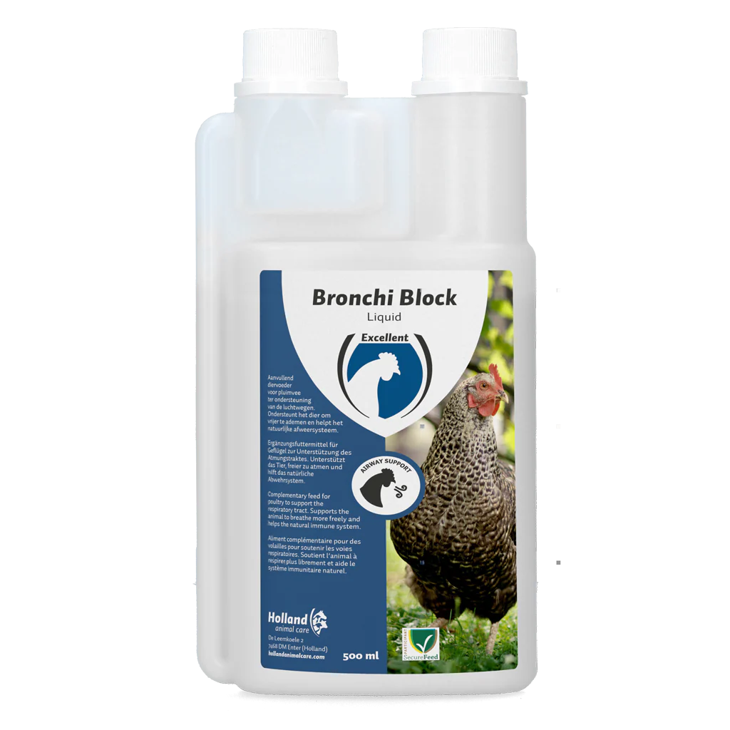 Bronchi Block vloeibaar is een aanvullend diervoeder voor pluimvee.