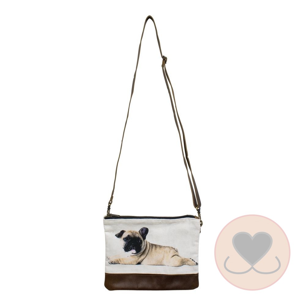 Leuke canvas crossbody tas met afbeelding van een Mopshond.