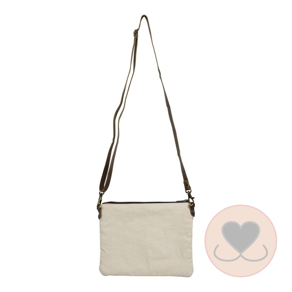 Tasje is gemaakt van katoen en leder & voorzien van een verstelbare lederen schouderband.