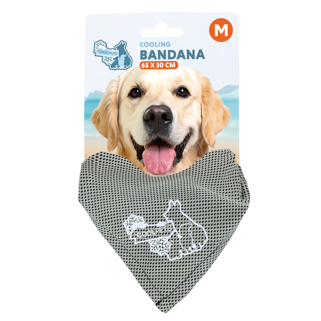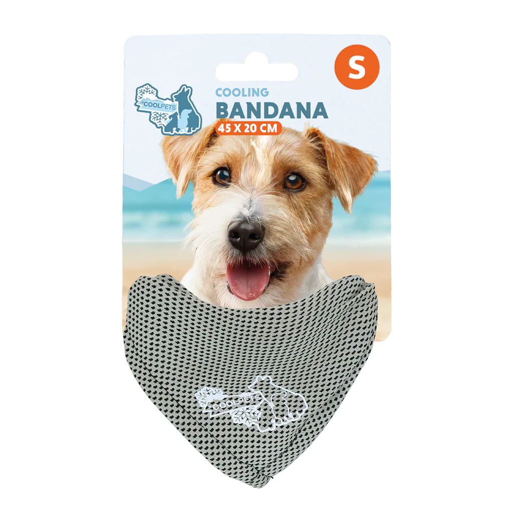 De Coolpets Cooling Bandana houdt honden koel tijdens warme dagen. De speciale verkoelende stof voelt vrijwel direct fris aan zodra de bandana nat wordt gemaakt. Dankzij de driehoekige vorm hoeft de bandana niet dubbelgevouwen te worden en blijft hij comfortabel zitten. De bandana is gemaakt van een combinatie van polyester en polyamide.