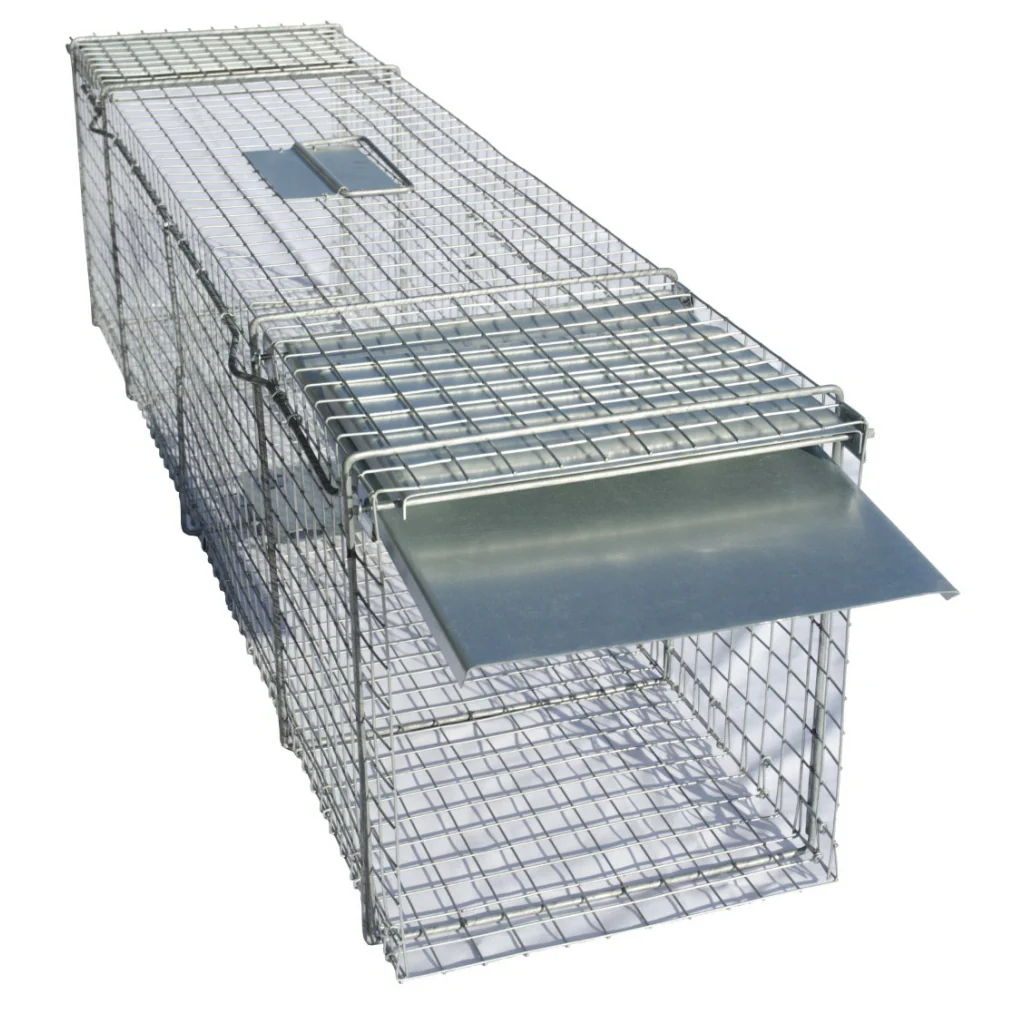 Zodra de vangkooi gezet is zal een dier op het lokaas afkomen. Wanneer geprobeerd wordt om te eten zal het desbetreffende dier op het plateau moeten gaan staan. Zodra het plateau beweegt zullen de ijzeren pinnen aan de zijkant van de kooi van elkaar af schieten. Op dat moment vallen de kleppen aan beide kanten van de kooi dicht. De kleinere klepjes zullen op het weerhaakje rusten zodat het dier geen mogelijkheid heeft om te ontsnappen. De val is gemaakt van gegalvaniseerd staal.