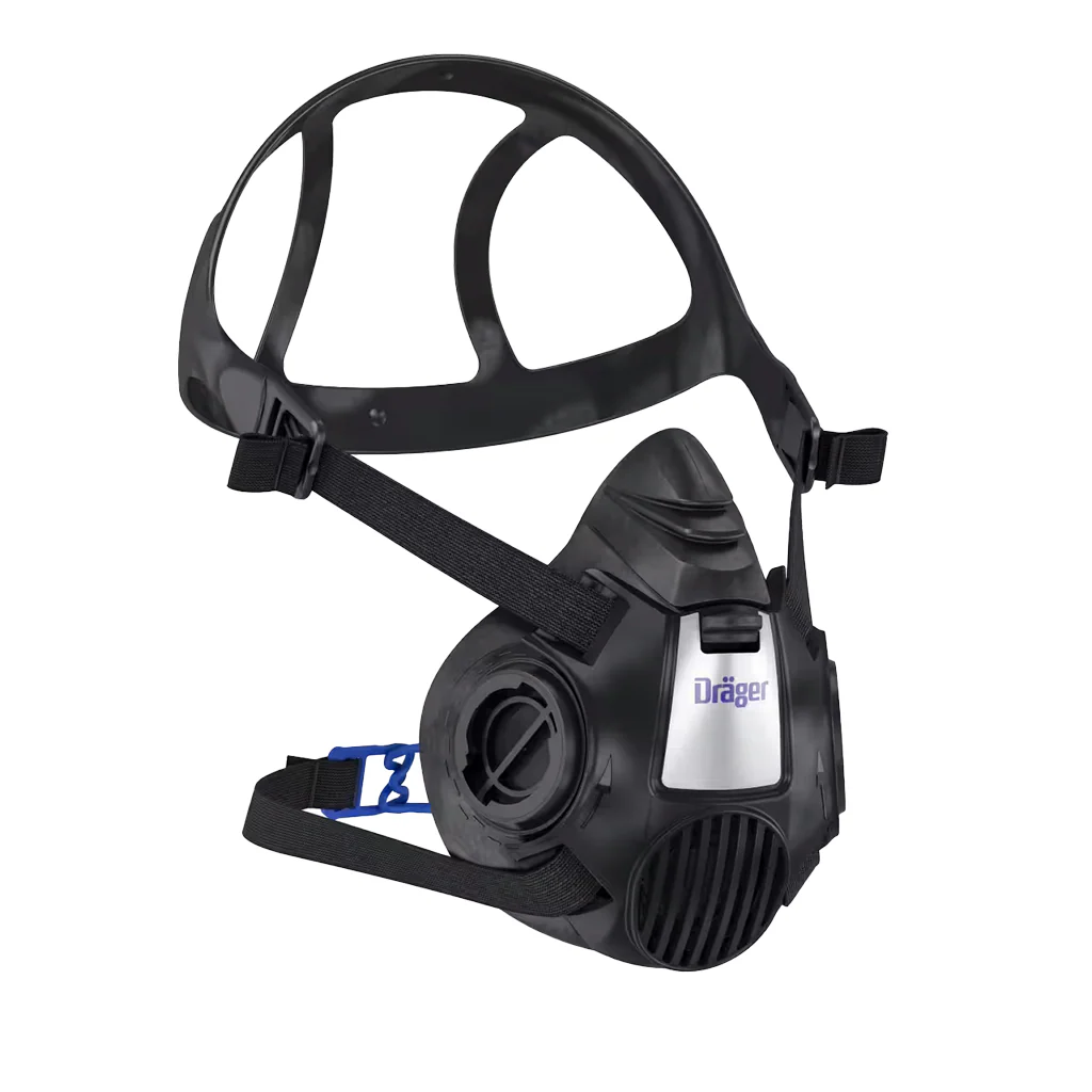 Kwalitatief hoogwaardig halfgelaatsmasker met twinfilter bajonetaansluiting voor wanneer u langdurig werkzaamheden uitvoert onder zware omstandigheden. De filters zitten aan de zijkant van het masker gepositioneerd, waardoor u perfect zicht houdt op uw werkzaamheden. Het maskerlichaam van DrägerFlex materiaal combineert hypoallergene eigenschappen met uitstekende chemische resistentie. Uitgevoerd met eenvoudig verstelbaar hoofdbandenstel met “drop-down” nekband voor het eenvoudig op- en afzetten van het masker.