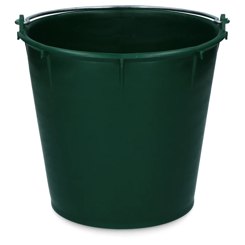 Gemaakt van stevig kunststof en met gegalvaniseerd hengsel (5 mm). Voorzien van maatvoering per liter zodat je kunt zien hoeveel er in de emmer zit.