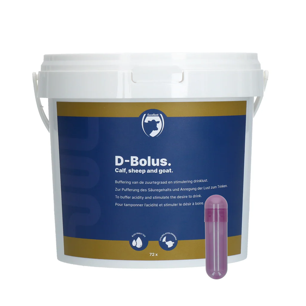De D-Bolus is een bicarbonaat pil die wordt gebruikt als aanvullend diervoeder voor kalveren. Het is speciaal ontwikkeld als dieetvoeder om de water- en elektrolytenbalans in het lichaam van het kalf te stabiliseren en de fysiologische spijsvertering te ondersteunen. Dit is belangrijk omdat een goede balans van deze stoffen essentieel is voor de gezondheid van het kalf.