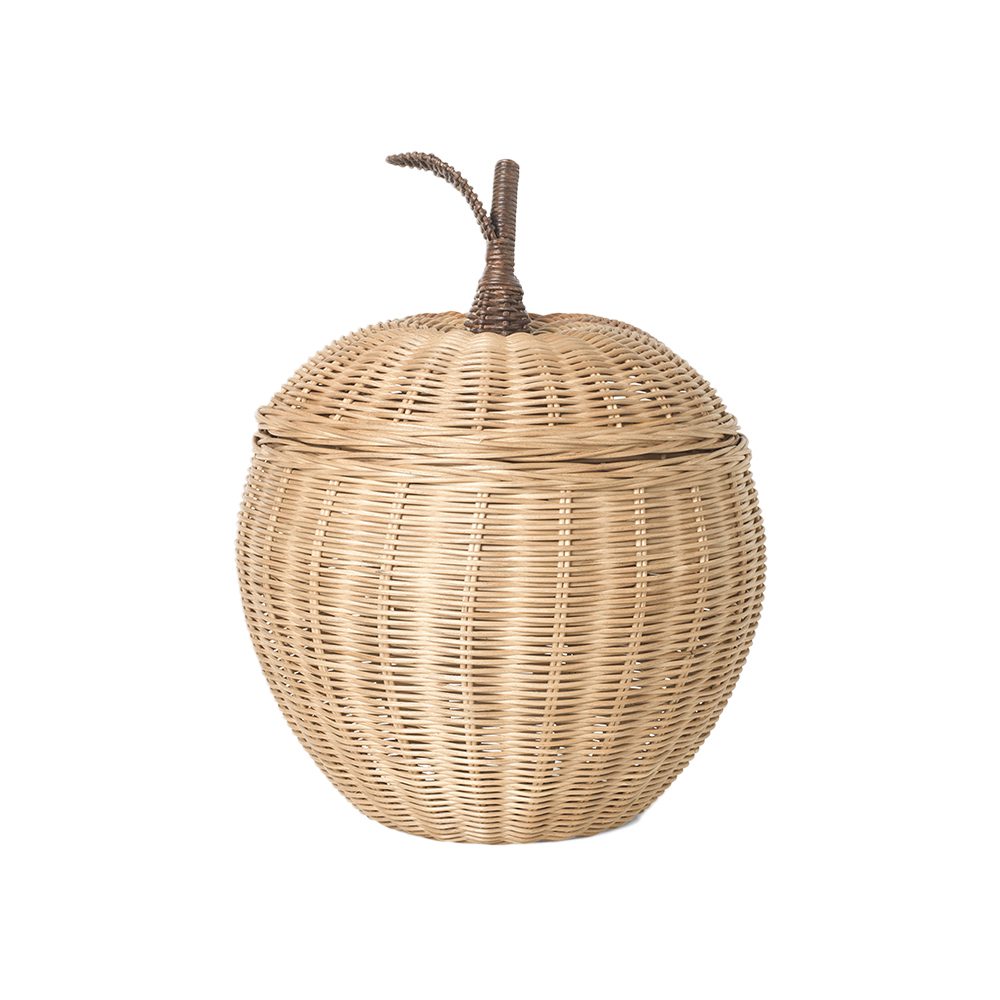 Breng een speels en natuurlijk accent in de kinderkamer met de Apple Opbergmand van Ferm Living. Deze mand, gemaakt van gevlochten rotan, biedt een charmante en praktische oplossing om speelgoed, knuffels of andere spulletjes netjes op te bergen.