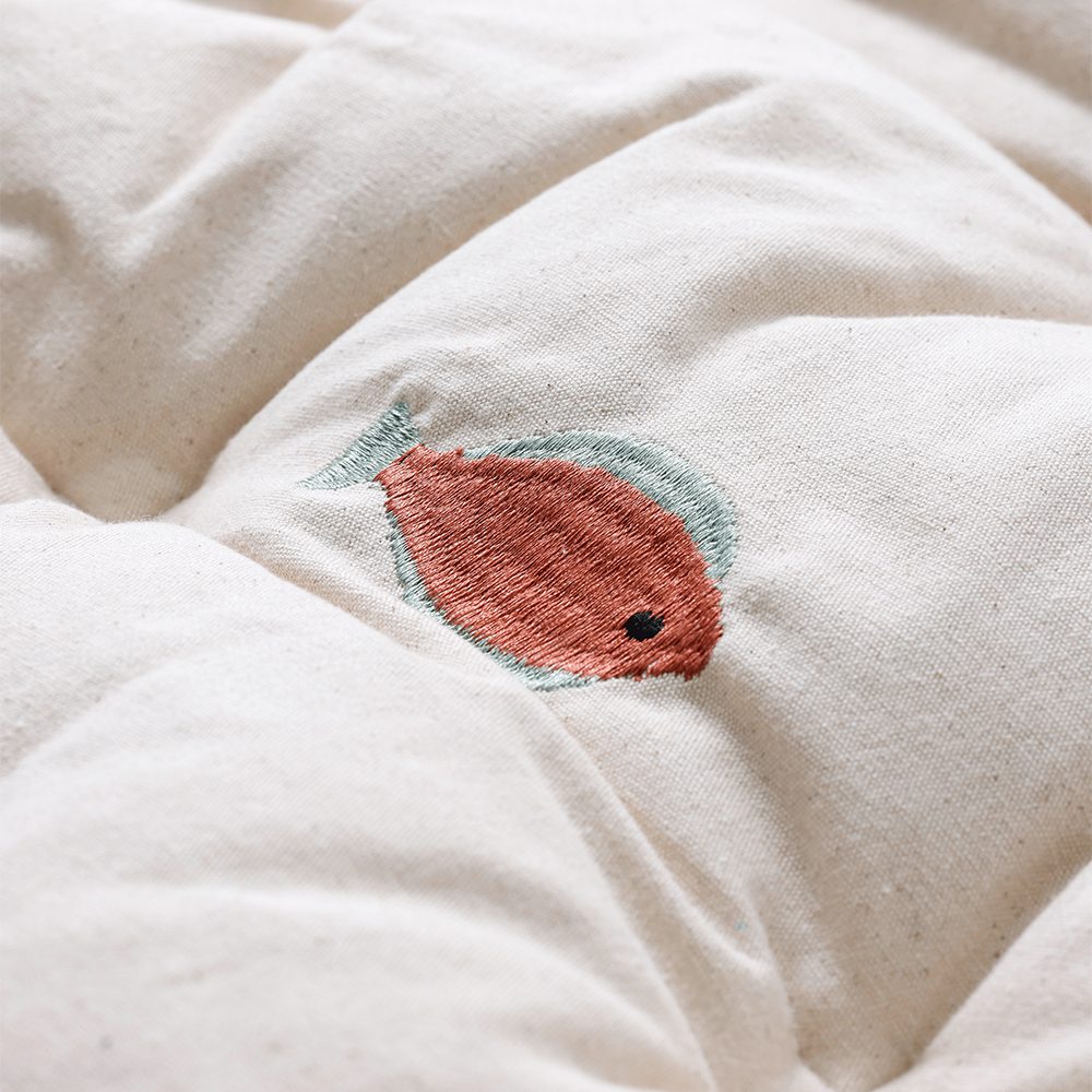 De Harbour Padded Playmat is een comfortabele en speelse plek waar kinderen kunnen liggen, rollen en ontdekken. De mat is gemaakt van ongeverfd biologisch katoen en versierd met subtiele borduursels van zeedieren, wat zorgt voor een rustige en natuurlijke uitstraling.