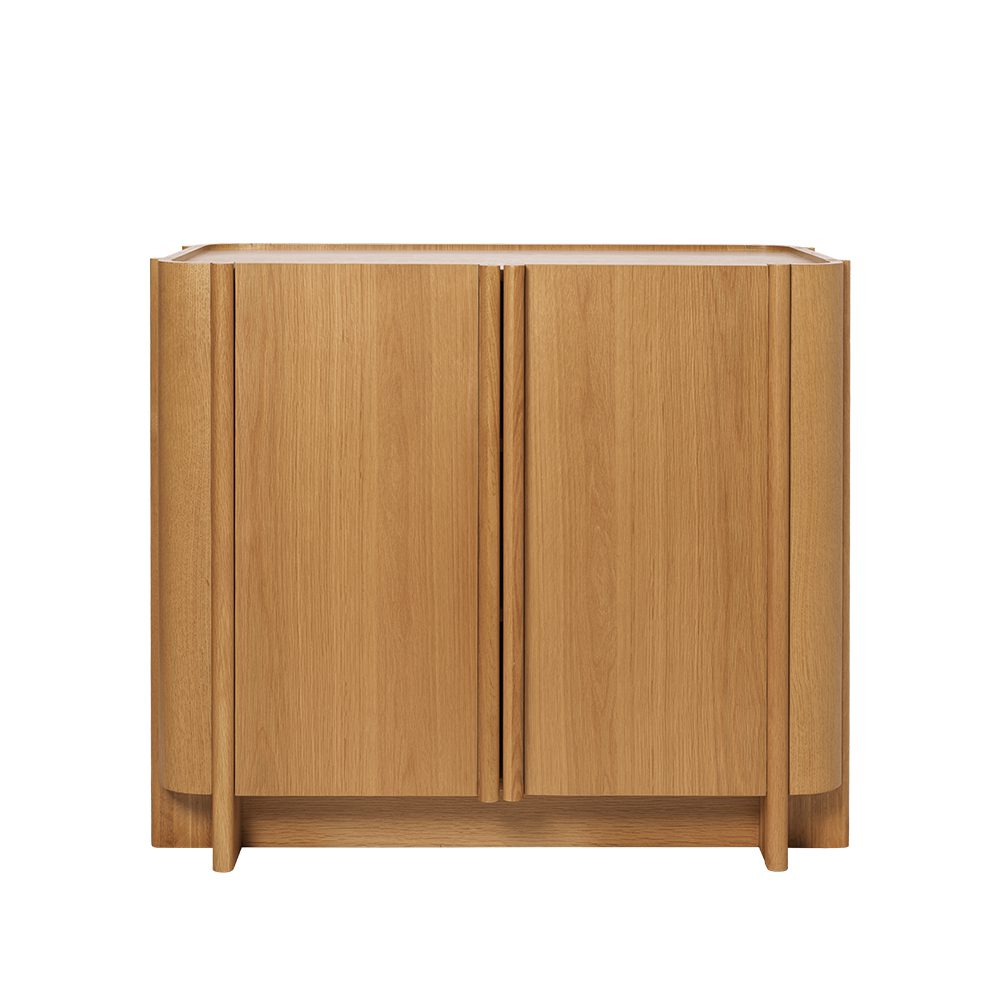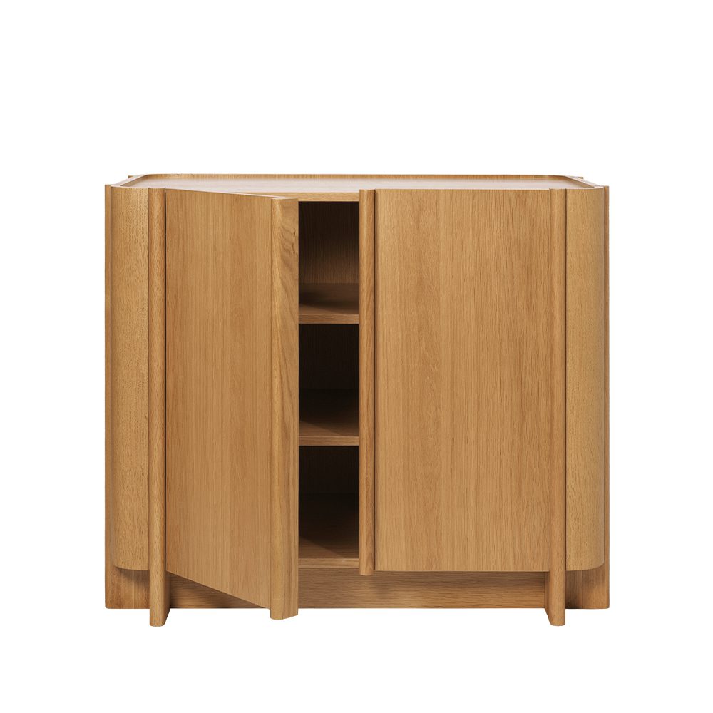 Gemaakt van warm FSC™ gecertificeerd eikenfineer met MDF-kern, combineert deze commode natuurlijke uitstraling met duurzaamheid en stevigheid. De slanke, sculpturale poten geven hem een karakteristiek design dat een echte eyecatcher in elke kamer maakt.