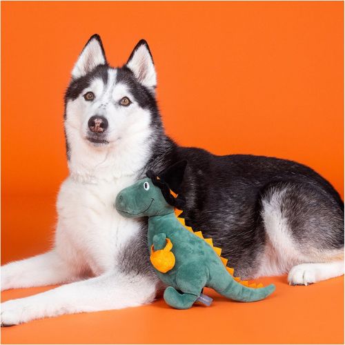 De Candy Rex is gemaakt van ultra zacht pluche, gevuld met pluis en bevat een superluide pieper voor extra speelplezier. Of je nu binnen een potje gaat apporteren of je hond lekker laat knuffelen met zijn nieuwe maatje, deze dino zorgt voor uren vermaak.