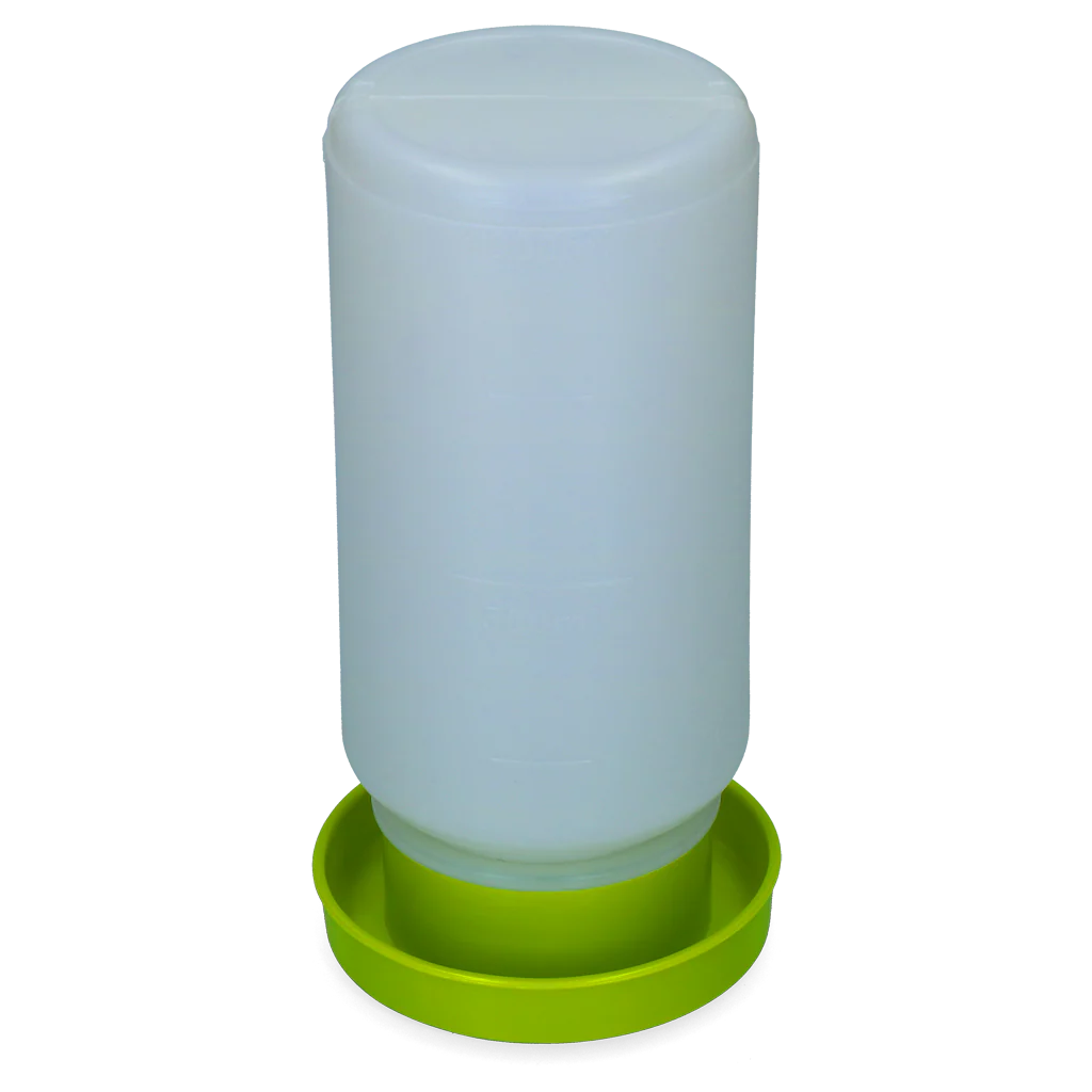Drinktoren voor pluimvee, gemaakt uit duurzaam kunststof.