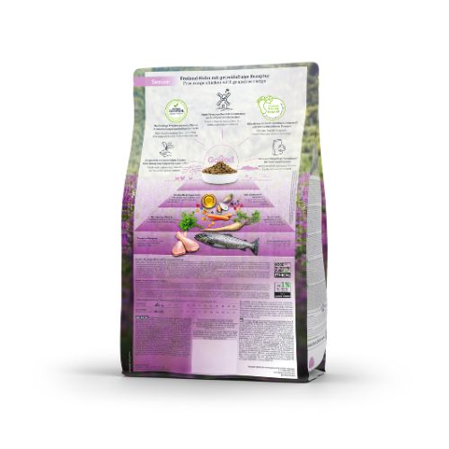 Regionale aardappel en wortel vormen de basis van deze voeding en leveren licht verteerbare energie. Dit helpt oudere honden om actief te blijven, terwijl de spijsvertering wordt ontzien. De toevoeging van mannan-oligosachariden en inuline werkt als prebiotica en ondersteunt een gezonde darmflora en een sterk immuunsysteem.
