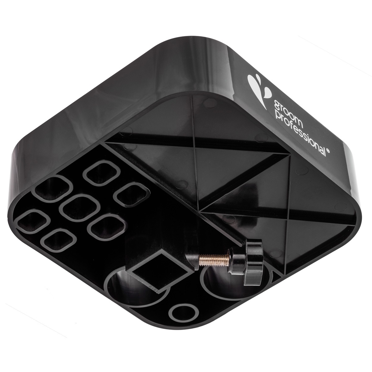 Maak van uw trimtafel een efficiëntere en georganiseerde ruimte met deze “Tool Caddy” van Groom Professional. Met een compartiment voor het opbergen van tondeuses, gereedschap en zeven ruimtes voor het veilig opbergen van scharen om te voorkomen dat ze van de tafel worden geslagen, evenals twee grotere gaten voor het opbergen van borstels. Gemaakt van sterk, duurzaam plastic dat jarenlang mooi blijft en makkelijk schoon te maken en te onderhouden is. Een essentieel onderdeel voor elke trimmer om uw gereedschap bij de hand te houden!