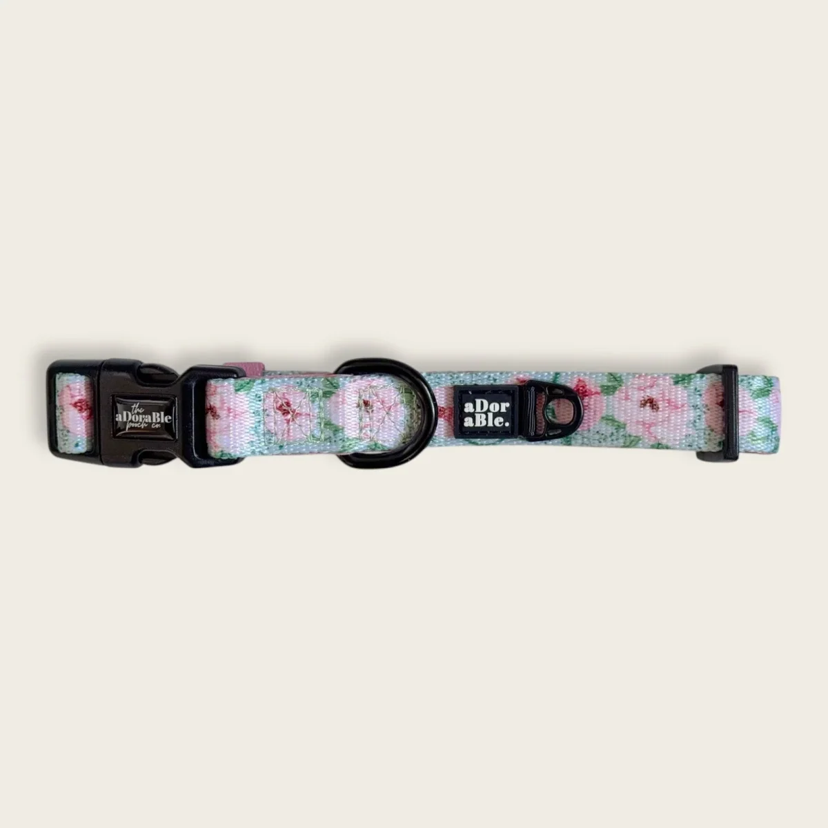 Geïnspireerd door de delicate pioenroos, is deze prachtig met de hand geïllustreerde halsband een must-have voor de lente- en zomermaanden. De stijlvolle, subtiele uitstraling maakt hem perfect voor elegante wandelingen met jouw viervoeter.