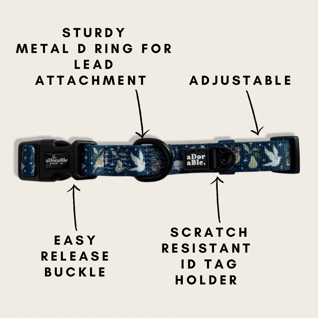 De halsband is lichtgewicht, volledig verstelbaar en zacht afgewerkt, zodat hij comfortabel zit tijdens dagelijkse wandelingen én feestelijke uitstapjes. Combineer hem met het bijpassende Twelve Days Harnas voor de complete look.
