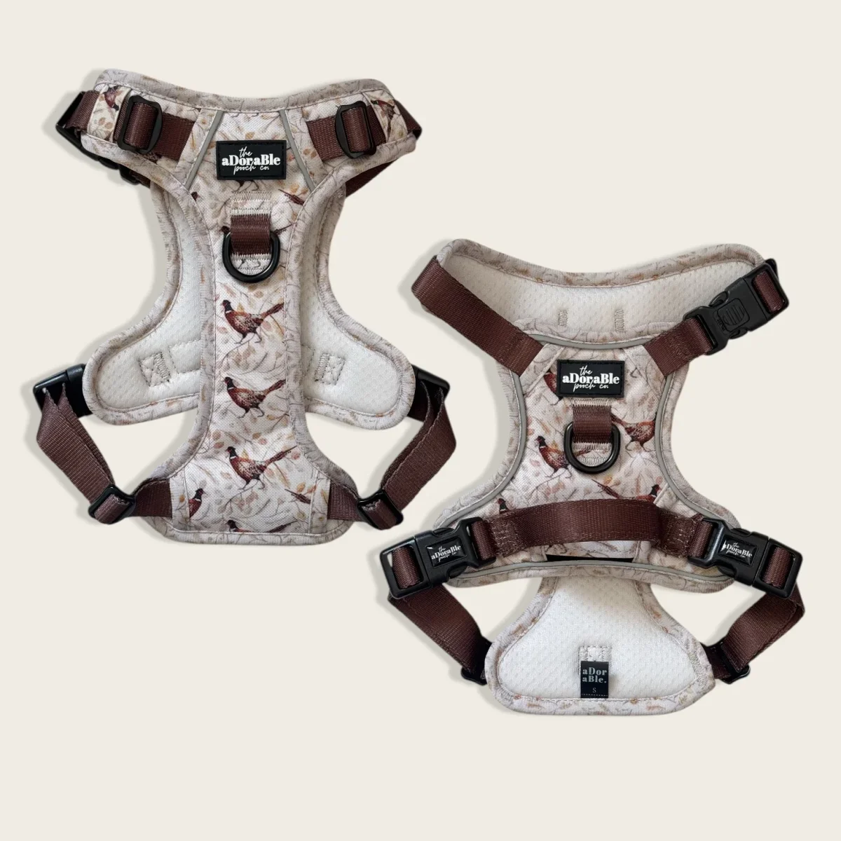 Ontdek de landelijke charme van het Farmland Pheasant Hike & Go™ Harnas van Truf & Peans. Dit hondenharnas met fazantenprint is geïnspireerd op de uitgestrekte velden en bossen van het platteland. Met warme aardetinten, subtiele fazanten en herfstige accenten krijgt je hond een stijlvolle, tijdloze look tijdens elke wandeling.
