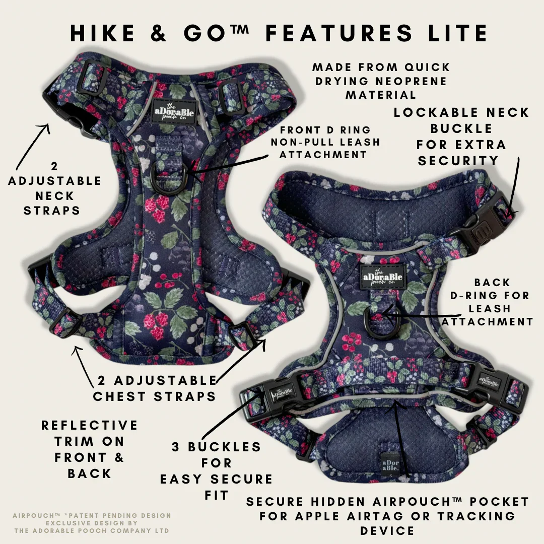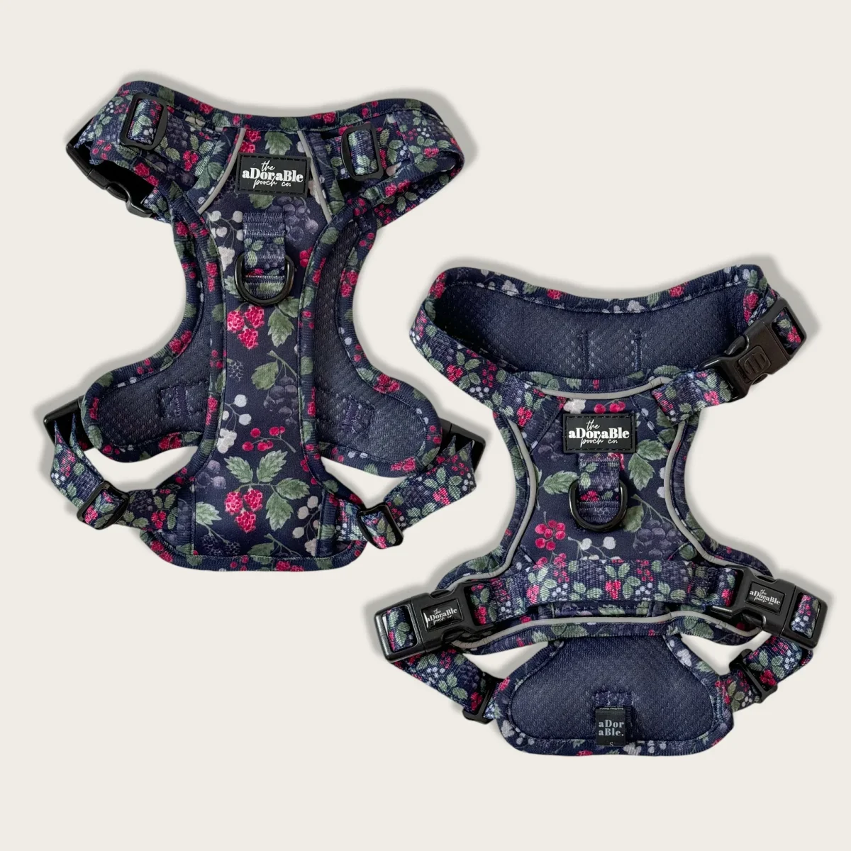Het Bramble Berry hondenharnas is een eerbetoon aan de herfst. Met een diepe navy basis en handgeschilderde bramen, wilde bessen en bladeren straalt dit ontwerp elegantie en countryside-charme uit.