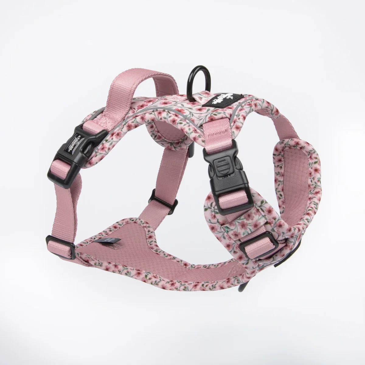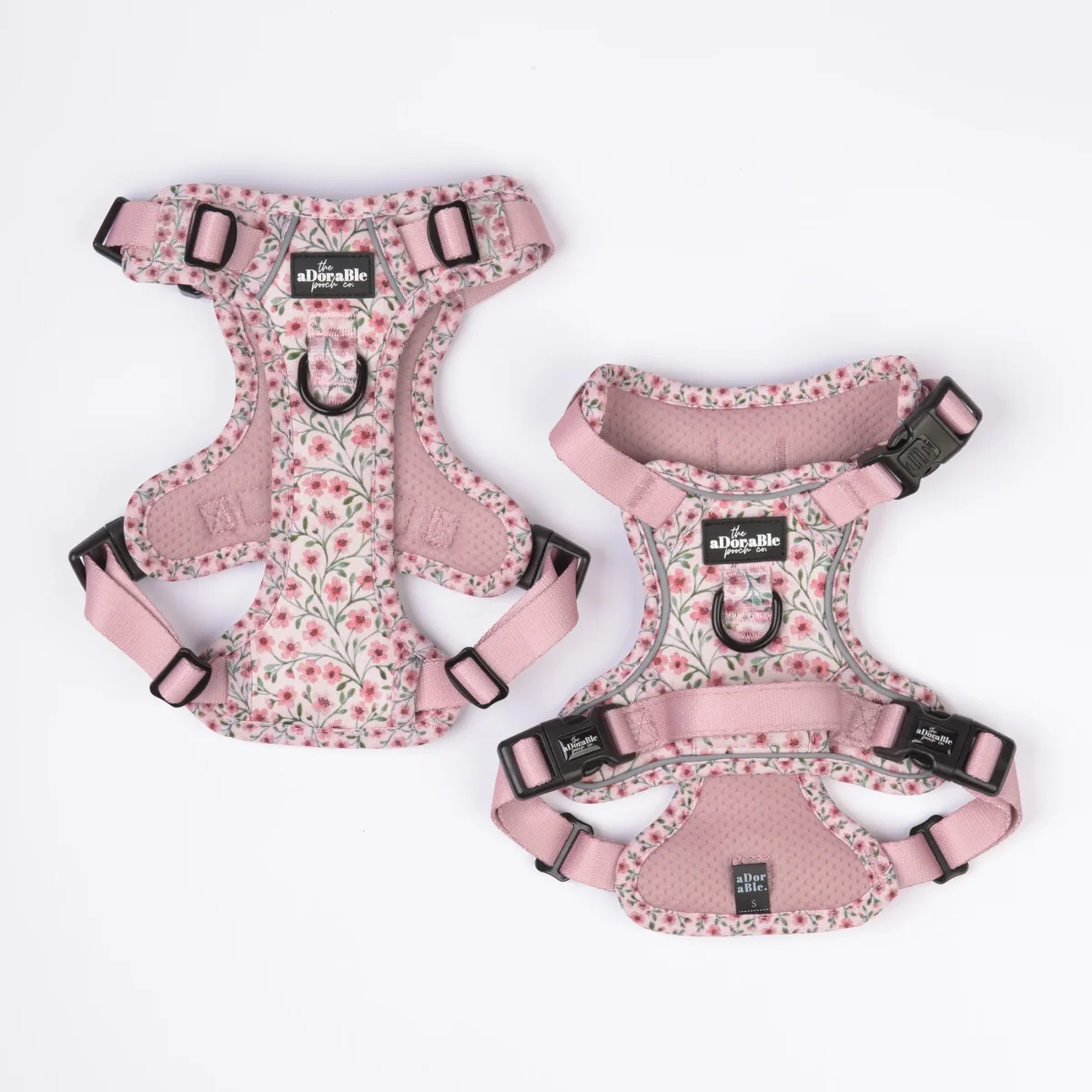 Elegant, zacht en stijlvol — het Hike & Go Lite™ harnas – Blushing Blossoms van Adorable Pooch Company is gemaakt voor honden die net dat beetje extra flair mogen hebben.