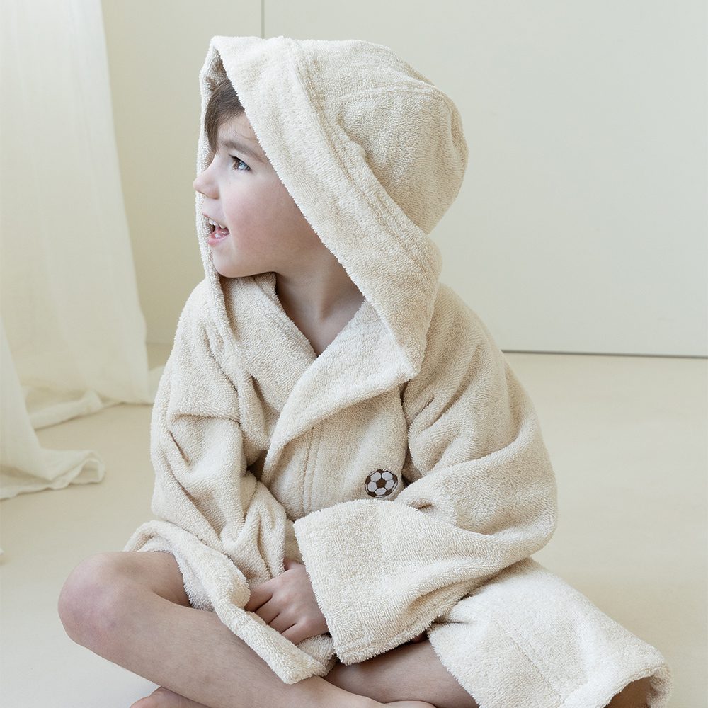 De capuchon beschermt hoofd en oren tegen een koele bries. Dankzij het ceintuur blijft de badjas stevig om het lijfje zitten en past hij altijd perfect. Of het nu voor een rustig ochtendritueel is, na het bad, in het zwembad of op het strand: deze badjas maakt elk moment knus, warm en zorgeloos.