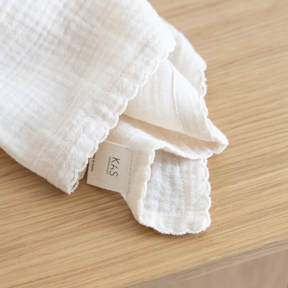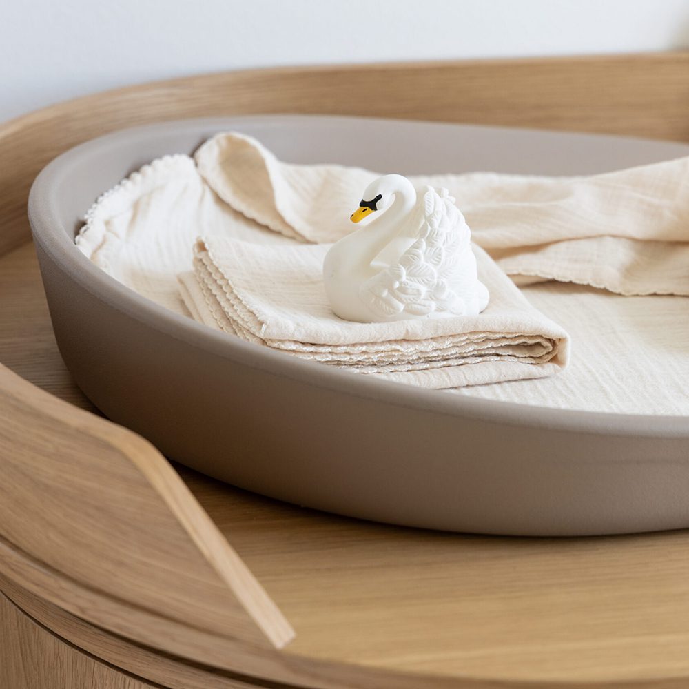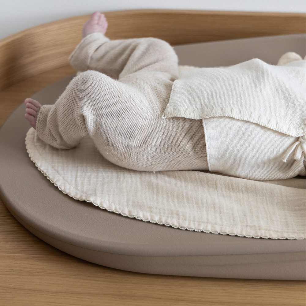 Deze set van 2 hydrofiele doeken is speciaal ontworpen voor het Kai aankleedkussen. De doeken zijn zacht, ademend en super absorberend, waardoor ze ideaal zijn voor het verschonen van je baby. Ze passen perfect op het aankleedkussen en bieden extra comfort en hygiëne. De doeken zijn gemaakt van 100% biologisch muslin katoen en hebben vier lagen, wat ze extra dik, zacht en absorberend maakt. Het elegante, afgewerkte randje en de ovale vorm geven de doeken een luxe uitstraling en zorgen ervoor dat ze perfect aansluiten op het Kai aankleedkussen. In een stijlvolle crèmekleur die matcht met de Kai meubelcollectie, een praktische en mooie toevoeging aan je babykamer. Een must-have voor iedere ouder die op zoek is naar zowel functionaliteit als stijl!