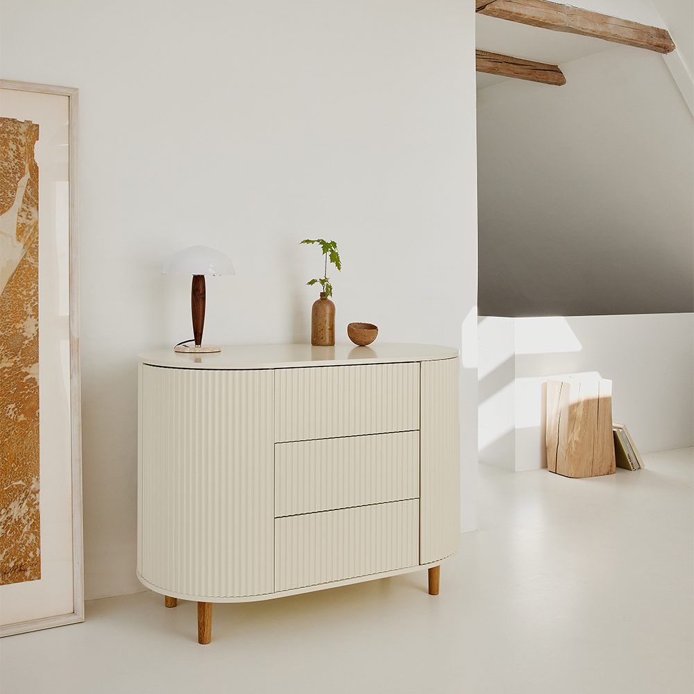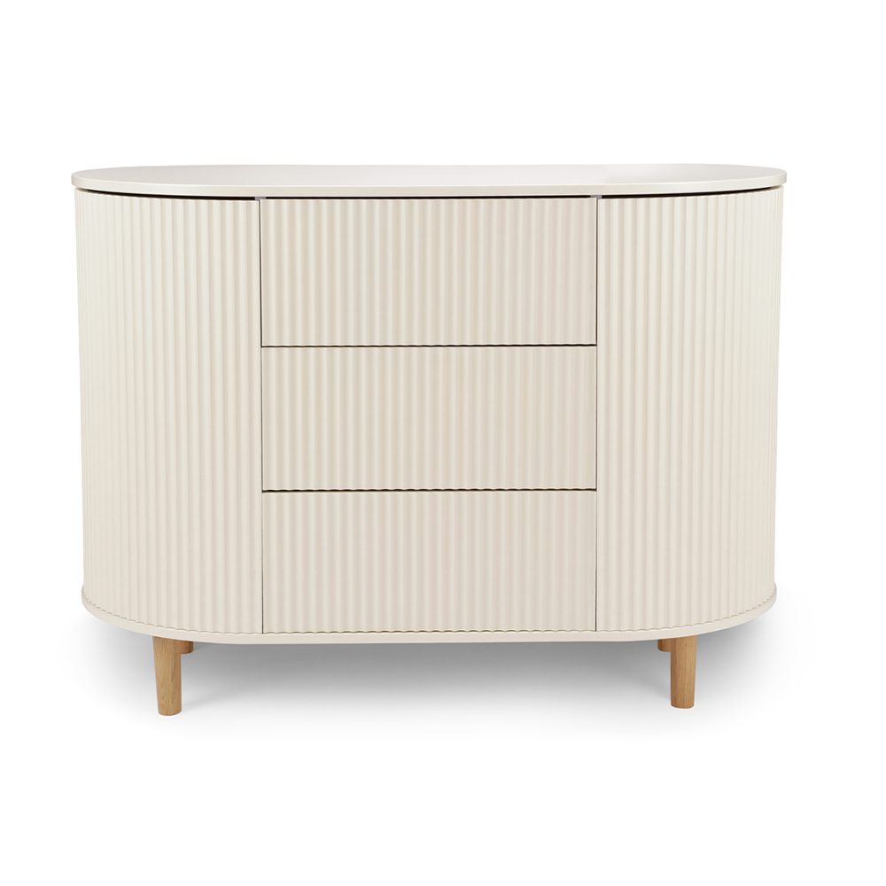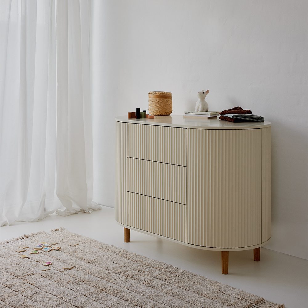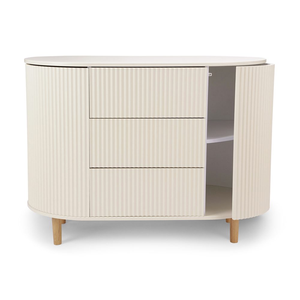 Deze unieke commode van Kas Kopenhagen is met zijn tijdloze design een ideale opbergoplossing in de babykamer. Het ontwerp is geïnspireerd op Dorische zuilen – een architectonisch element uit het oude Griekenland en een van de vijf orden van de klassieke architectuur. De kegelvormige poten en de onzichtbare schroeven geven het kenmerkende ontwerp van KAS Kopenhagen weer. Met een elegante uitstraling en doordachte functionaliteit kan het dressoir snel en eenvoudig worden omgetoverd tot een prachtige verschoonplek. De verschoonplank kan apart worden aangeschaft en zonder zichtbare gaten in het tafelblad worden geïnstalleerd. Wanneer de commode niet meer nodig is, kan de plank eenvoudig verwijderd worden en kan de commode gebruikt worden in de kinderkamer of in andere kamers van het huis zodat je er nog jarenlang van kunt genieten.