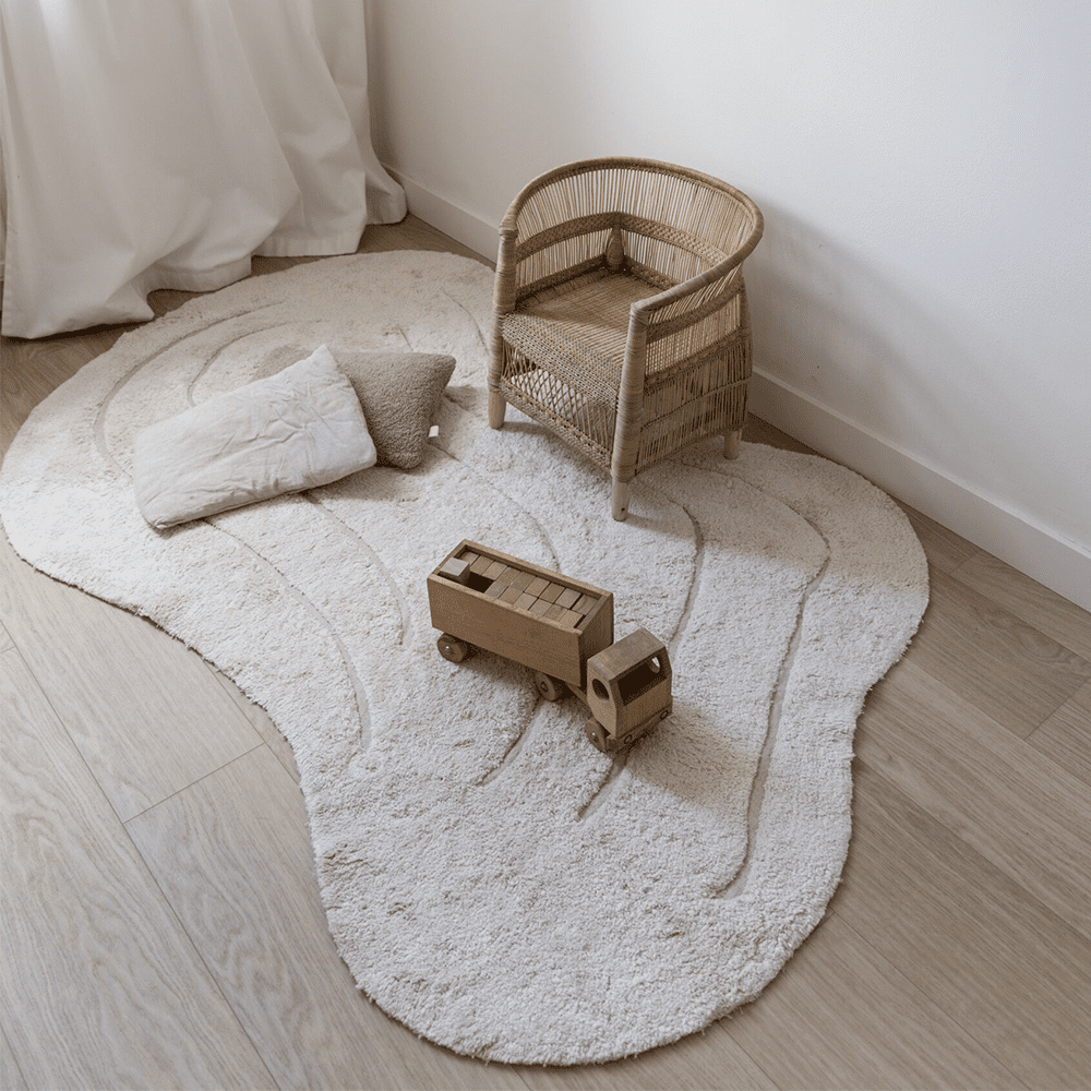 De vloerkleden van KAS Kopenhagen zijn handgemaakt van 100% milieuvriendelijke kleurstoffen die voldoen aan de Europese eisen en normen. De vloerkleden zijn wasbaar op 30 graden, wat erg praktisch is bij gebruik in de kinderkamer of als je allergisch bent. Wij raden aan om een antislip te gebruiken of het vloerkleed op een antislip oppervlak neer te leggen. Schud het vloerkleed bovendien voor gebruik goed uit om de pluisjes te verwijderen. Gelieve het vloerkleed niet in de droogtrommel te drogen!
