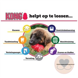 Deze KONG is ontwikkelt als Puppies eerste speelgoed, gefabriceerd van puur 100% latex, wat iets zachter is als de normale KONG. Dit heeft tot doel het tandvlees (Gum) extra te beschermen. Helpt de pup bij de ontwikkeling van zijn gebit.