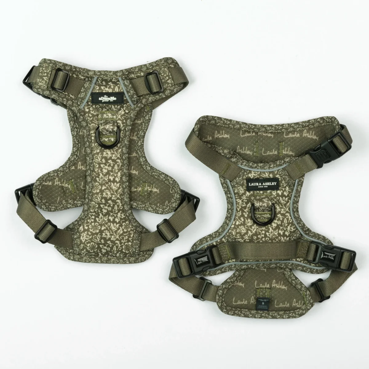 Het Laura Ashley Sweet Alyssum harnas combineert elegante heritage-stijl met comfort en functionaliteit voor dagelijkse wandelingen. De verfijnde Sweet Alyssum print is geïnspireerd op een klassiek ontwerp uit het Laura Ashley archief en toont delicate potentilla bloemen met sierlijke bladeren en stelen.