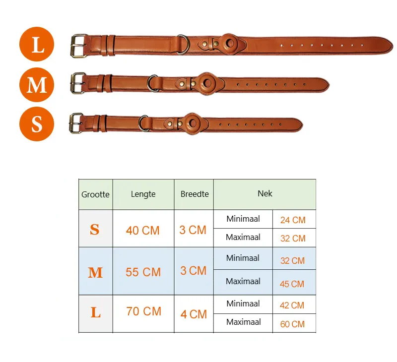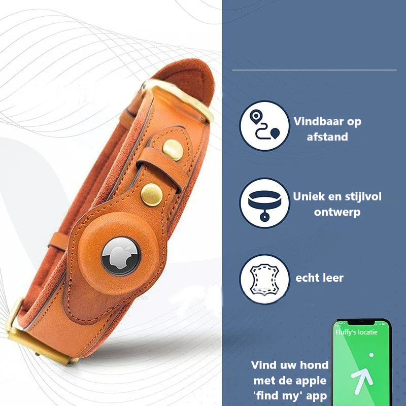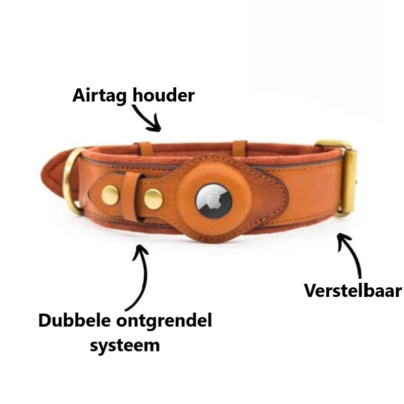 Met deze stijlvolle en praktische halsband van echt leer kunt u uw hond altijd terug vinden! De halsband bevat namelijk een geïntegreerde Apple AirTag houder. De Airtag kan onmogelijk uit de halsband vallen door het dubbele ontgrendel systeem!