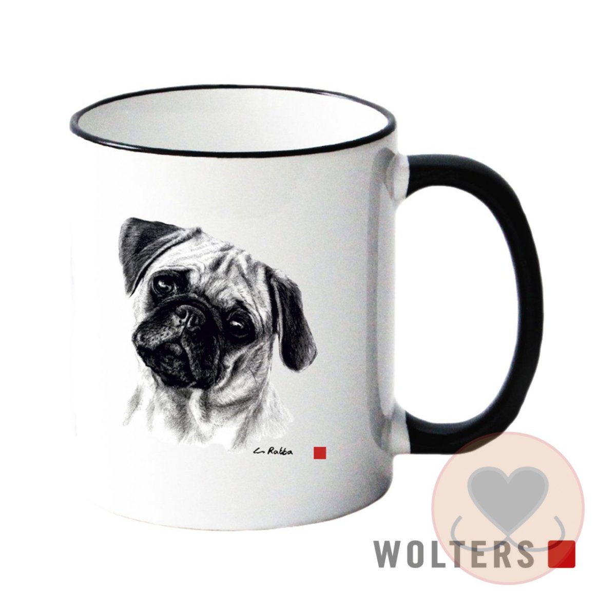 Voorzien van een mooie natuurgetrouwe pentekening, die Claus Rabba aan de hand van foto’s onze lievelingshonden gemaakt heeft.