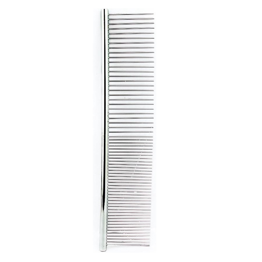 Deze metalen kam heeft een gedeelte met grovere tanden en een gedeelte met fijnere tanden om ook de fijnste klitten uit te kammen. Zo heb je twee kammen in één! Geschikt voor vele halflange tot lange vachten.