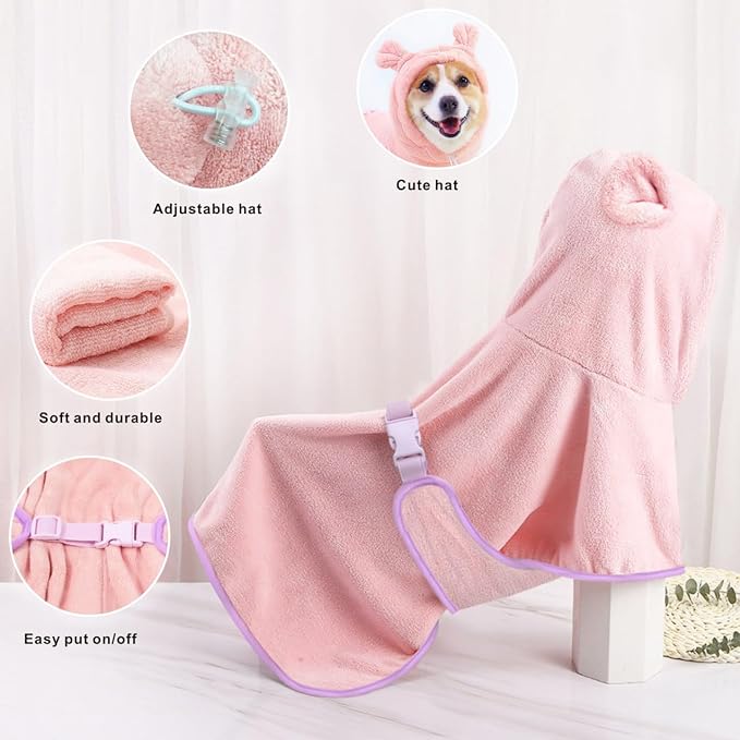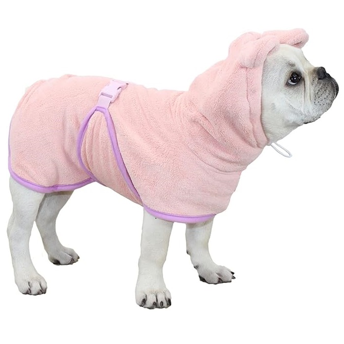 Deze schattige microvezel badjas heeft een capuchon met oortjes. De elastische band is verstelbaar waardoor de badjas goed aansluit. De microvezel stof heeft een sterk absorberend vermogen waardoor de droogtijd van je huisdier aanzienlijk versneld wordt. Ideaal voor na het wassen, na een wandeling in nat weer of na het zwemmen.