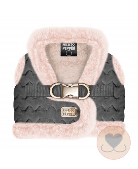 Dit heerlijk zachte en warme winter harnas heeft een mooie grijze kleur en is gevoerd en afgewerkt met een goede kwaliteit imitatiebont. Dit mooie harnas heeft een luxe uitstraling maar nog belangrijker, het draagt uiterst comfortabel voor jouw hond.