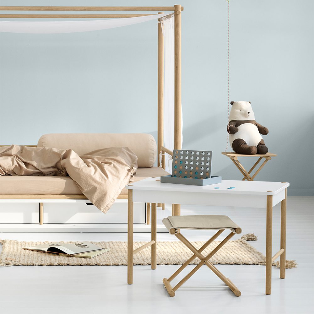 De Juniorkruk is speciaal ontworpen om perfect aan te sluiten bij het Camp Junior Bureau, maar kan ook op zichzelf staan of gecombineerd worden met andere meubelstukken in huis. Het lichte ontwerp zorgt ervoor dat kinderen de kruk gemakkelijk kunnen verplaatsen naar elke gewenste plek. Wanneer hij niet in gebruik is, kan de kruk eenvoudig worden ingeklapt en opgeruimd.