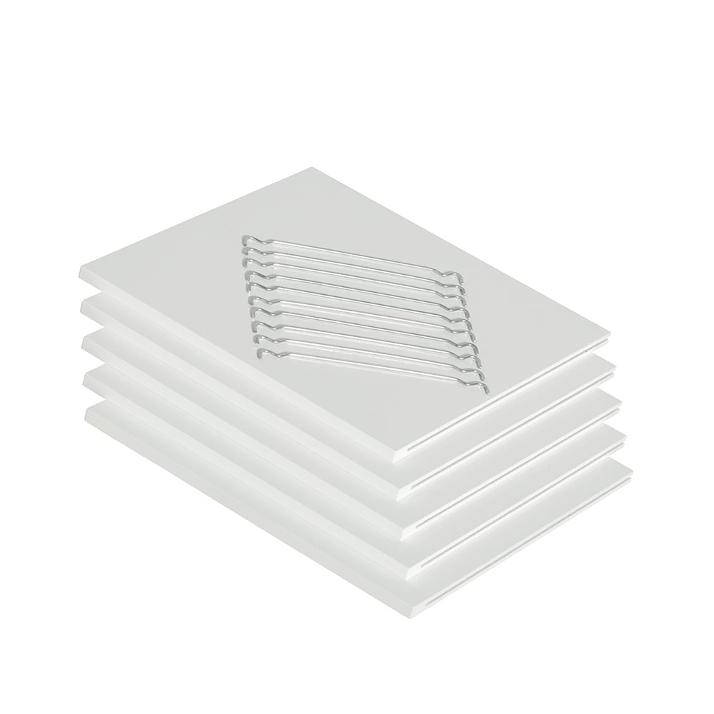 Vijf witte planken voor de vakkenkasten uit de Wood Collectie. De planken kunnen worden gebruikt om de ruimte van de vakkenkast verder in te delen.