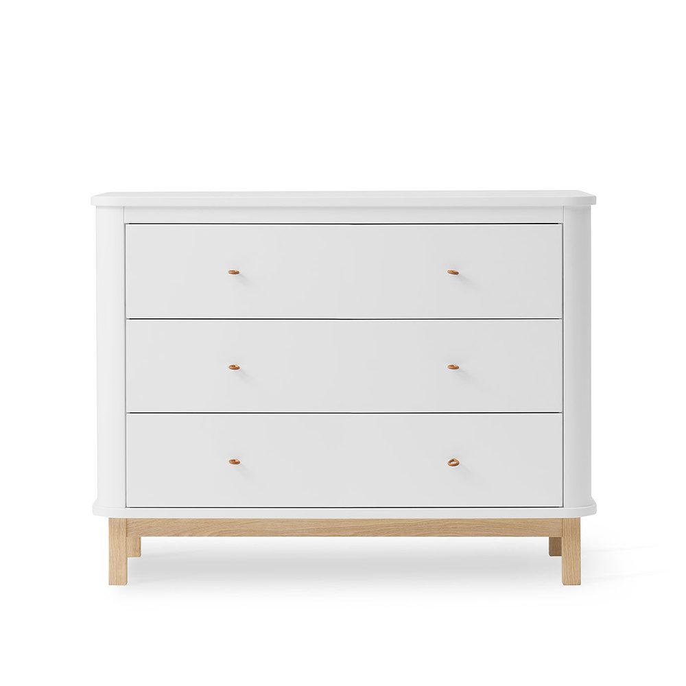 Met de praktische werkhoogte van 90,5 cm stelt de commode uit de Wood collectie jou in staat om moeiteloos duizenden luiers te verschonen. En die luiers heb jij altijd binnen handbereik in een van de 3 ruime lades.