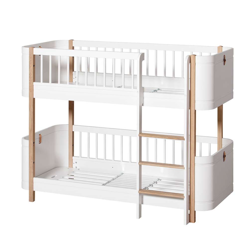 Zoals alle meubels van Oliver Furniture is ook het Mini+ low bunk bed ontworpen om jarenlang plezier van te hebben. Doordat het een laag stapelbed is, met een hoogte van 128 cm, kan het bovenste bed al vanaf jonge leeftijd gebruikt worden. En wanneer er liever los van elkaar geslapen wordt, bestel jij de ombouwset met korte pootjes na. Hiermee bouw jij het stapelbed gemakkelijk om in twee losse bedden.