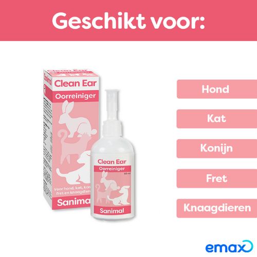 Clean Ear Oorreiniger 60 ml is speciaal ontwikkeld voor het grondig reinigen van de oren van honden en katten van alle leeftijden. Daarnaast helpt Clean Ear bij de bestrijding van oormijt.