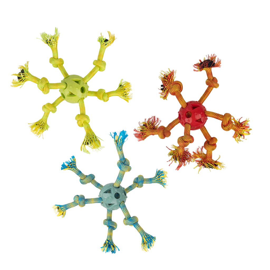 De Pawise Play-N-Tug Multi Rope Ball is een bal waar meerdere touwen doorheen lopen. Deze bal is perfect om mee te apporteren, om trekspelletjes te doen of om op te kauwen. Dit veelzijdige speeltje zorgt voor urenlang plezier en kan zowel binnen als buiten gebruikt worden.
