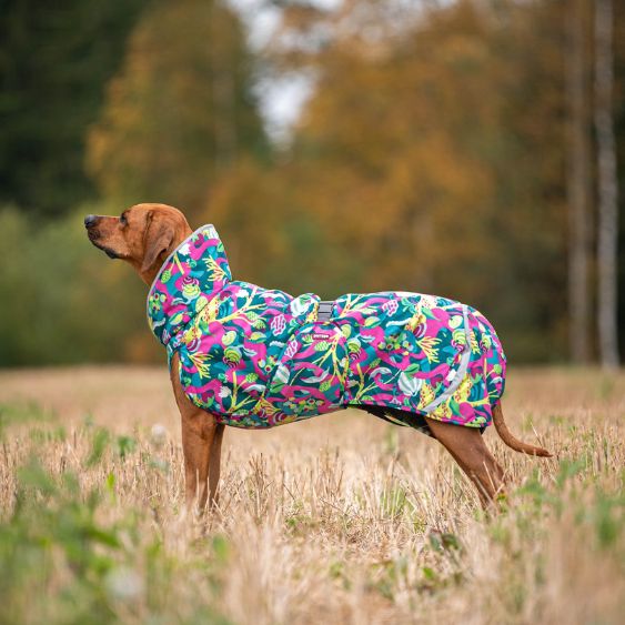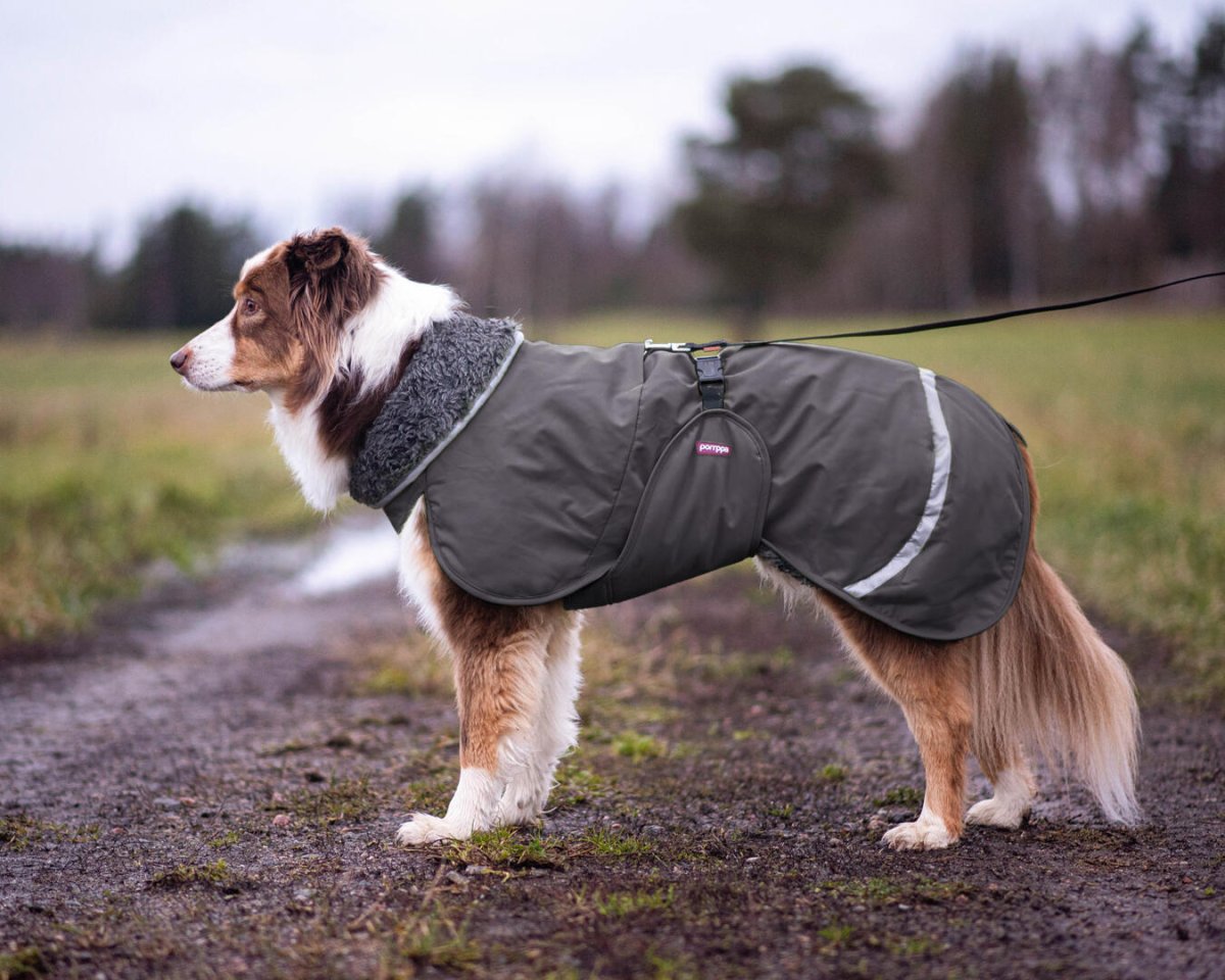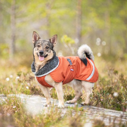 PerusPomppa met Tuigopening is een warme en veelzijdige winterjas die geschikt is voor honden van alle types. De waterproof en duurzame buitenstof beschermd je hond tegen zowel regen als sneeuw. De dikke teddyvoering houdt de hond warm in vriestemperaturen en sterke wind. De warme jas werkt goed als winterjas voor honden met een dikkere vacht en voor koudegevoelige honden. PerusPomppa is het beste voor drie-seizoen gebruik.