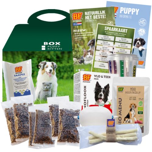 De puppybox BF Petfood is ideaal om kennis te maken met de voeding van BF Petfood of om mee te geven aan puppykopers.