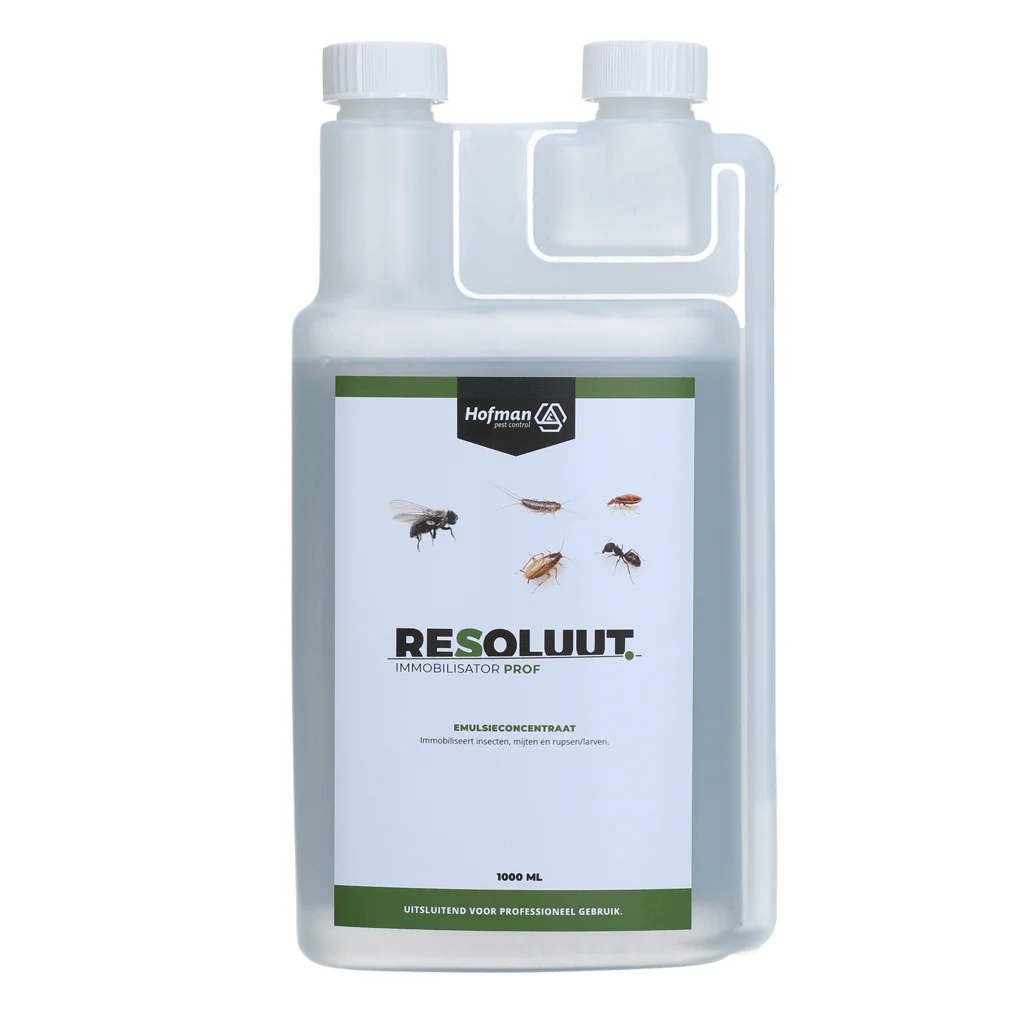 Resoluut Immobilisator Prof is geen biocide, maar heeft een fysieke werking op insecten. Hierdoor is resistentie opbouw niet mogelijk. Het product is ontwikkeld om te gebruiken als toevoeging aan insecticiden, waardoor deze een betere effectiviteit krijgen en het resistentie doorbreekt.
