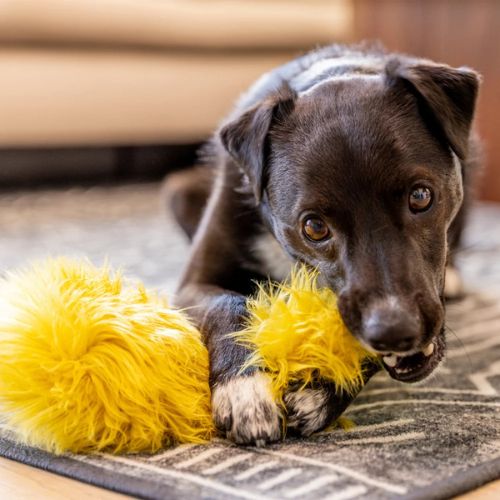 - Sterke pluche hondenknuffel in vrolijke Citrus tint