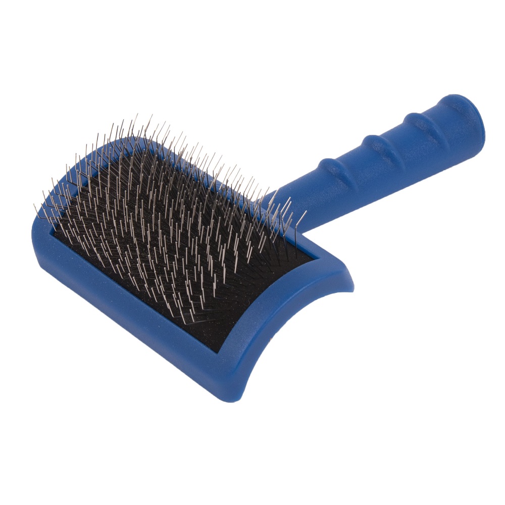 Deze professionele slickerborstel van Show Tech is geschikt voor dikke en zwaardere vachtsoorten. Dankzij de lange, stevige pinnen dringt de borstel diep door in de vacht en worden klitten voorkomen en makkelijker uitgeborsteld.