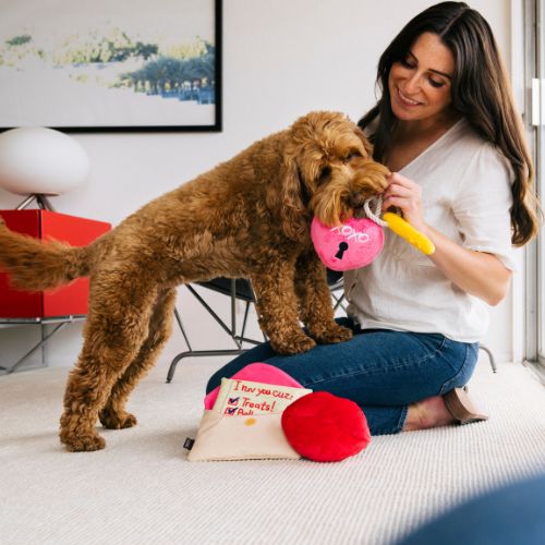 Vier de liefde met Smoochy Poochy uit de Love Bug Collection! Dit speeltje is meer dan alleen een knuffel; het is een schattig eerbetoon aan de genegenheid die jij met jouw hond deelt. Het speeltje is ontworpen in de vorm van een mond met twee rode lippen, waardoor het lijkt alsof jouw harige vriend jou een slobberloze kus geeft.