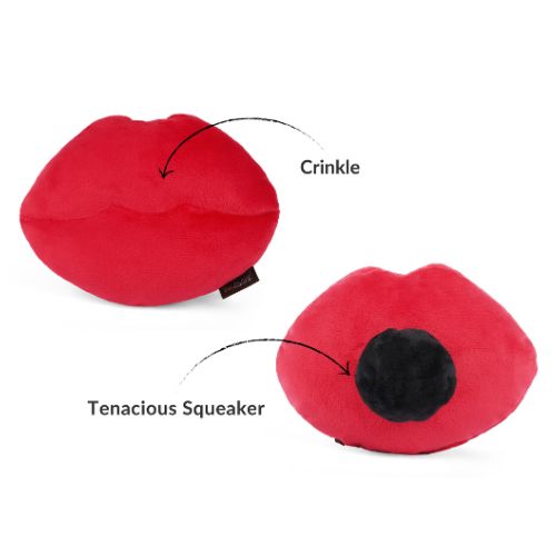 Aan de achterkant van de lippen bevindt zich een bolletje met een pieper, waardoor het speeltje gemakkelijk vast te houden is voor zowel jou als jouw hond. Het toegevoegde geluidselement maakt het speelplezier nog levendiger en interactiever. Bovendien zijn de lippen voorzien van kreukels, wat een extra sensorisch element toevoegt aan het spel.