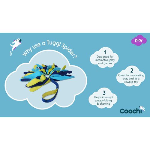 De Coachi Tuggi Spider is niet zomaar een hondenspeeltje, maar een effectief trainingshulpmiddel dat je hond helpt geconcentreerd, gemotiveerd en betrokken te blijven. Dankzij de zachte materialen is het speeltje ook perfect geschikt voor jonge of gevoelige honden. Door het speeltje enkel te gebruiken tijdens beloningsmomenten blijft het een onweerstaanbare motivatiebron voor jouw hond.