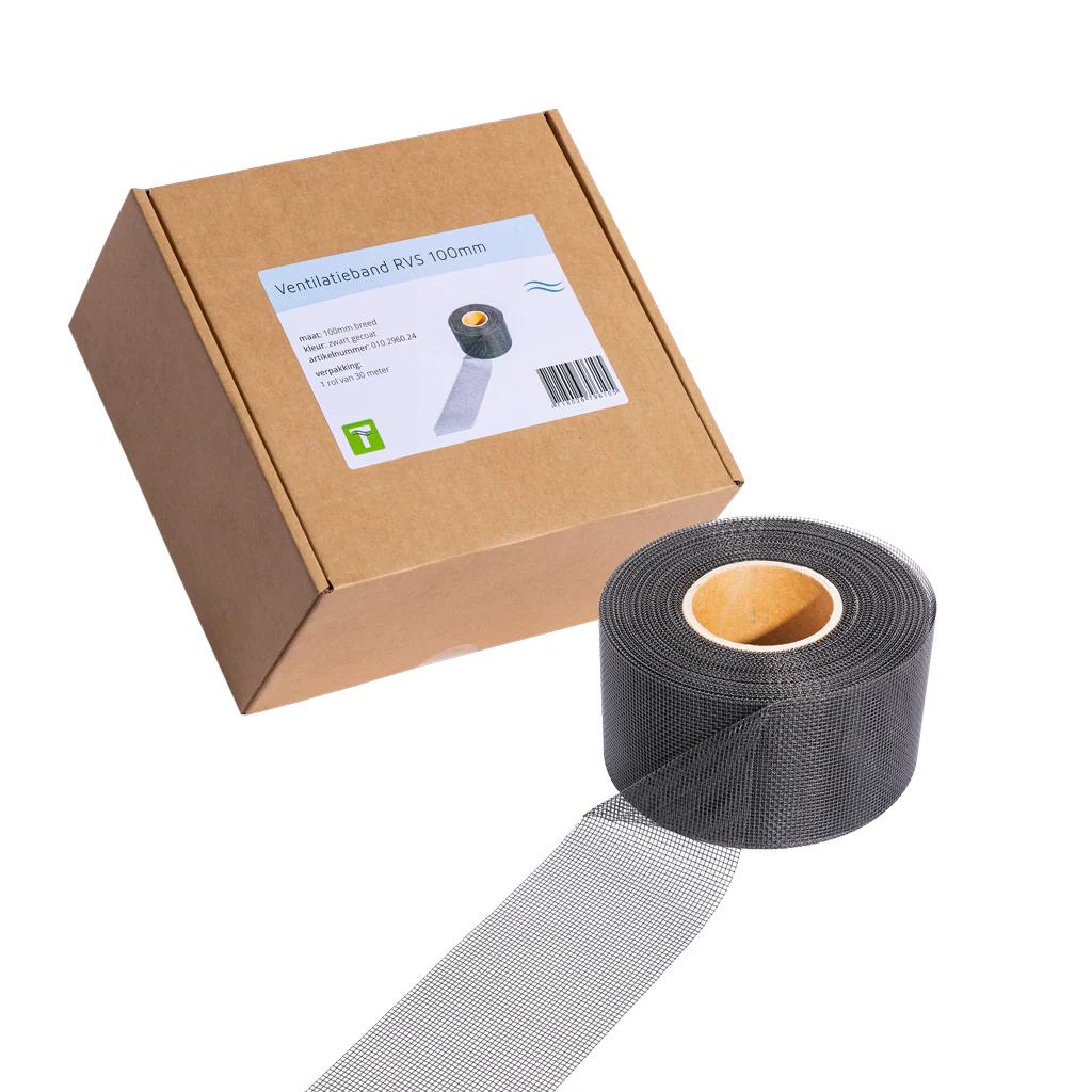 Dé combinatie tussen goede ventilatie en wering van ongedierte; Ventilatieband RVS. Zoals de naam al aangeeft is de band vervaardigd van RVS om een lange levensduur te garanderen. Toe te passen in allerlei ventilatieopeningen. Door de flexibiliteit van het materiaal is het zeer eenvoudig te vormen.