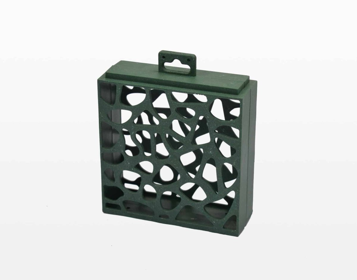 De Vogelcakehouder Hulst is gemaakt van gerecycled kunststof, een bewuste materiaalkeuze van The Bird Family®. Gerecycled kunststof is duurzamer dan nieuw plastic, roest niet, rot niet en gaat jarenlang mee zonder onderhoud. De houder behoudt zijn kleur en vorm ook na veelvuldig gebruik buiten in weer en wind.