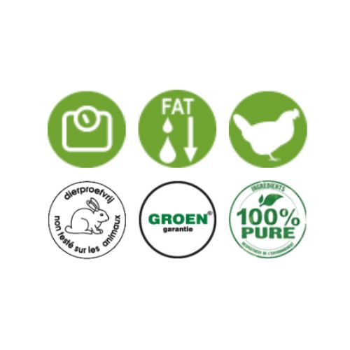 - Eiwitrijk (kip en vis) en laag in vet en calorieën.